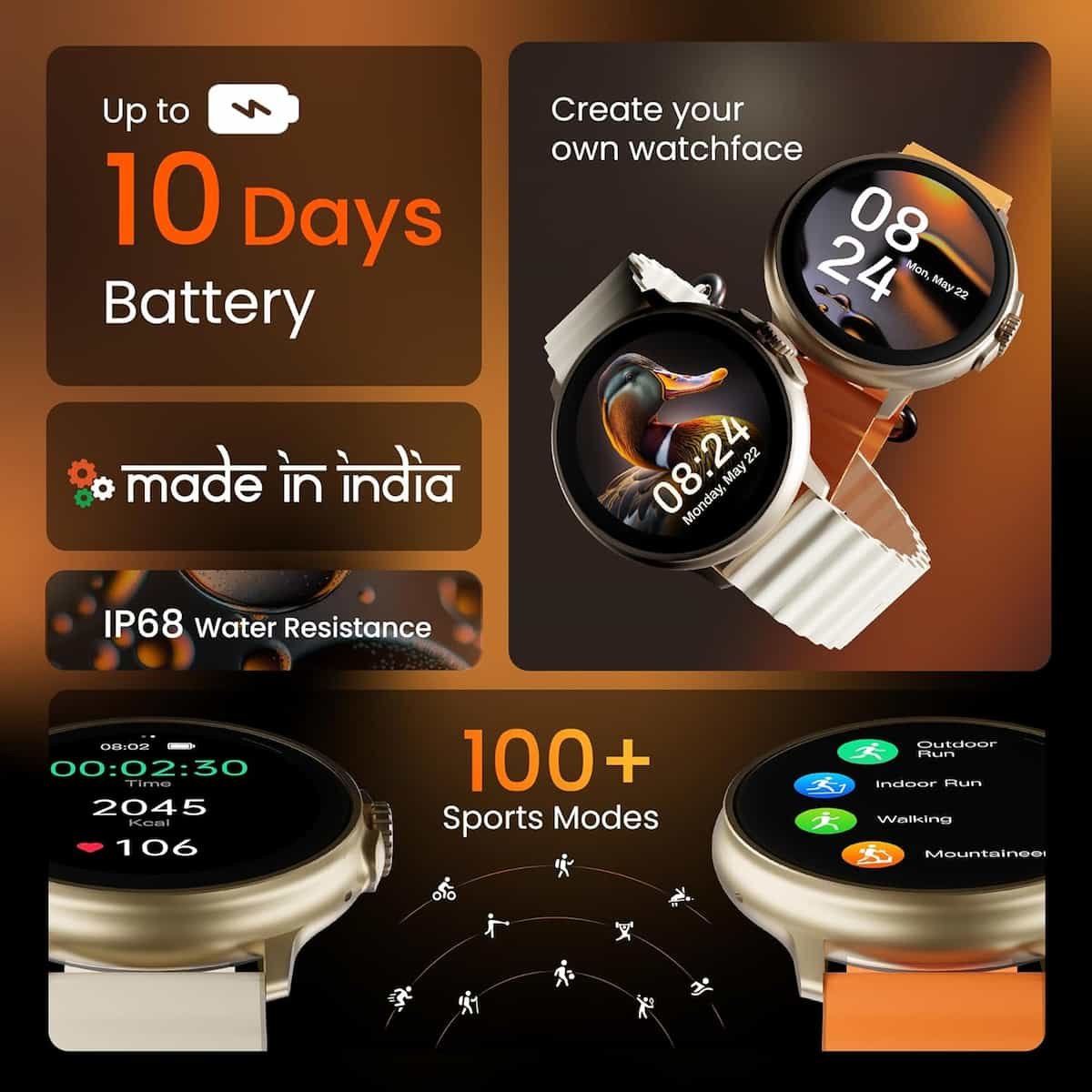 Additional Features: 100+ Watch Faces, Up to 10 Days Battery, 3 Inbuilt Games, Customizable Watch Face, Weather, Voice Assistance, AI Watch Face