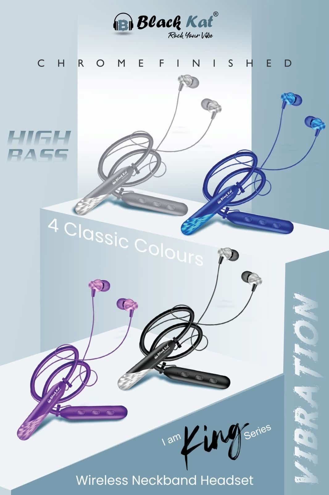 Black Kat King Series – Wireless Neckband Headset