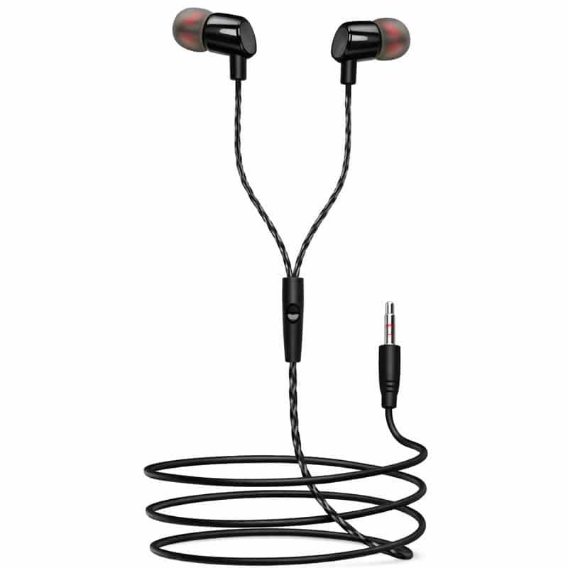 Comfortable in-ear wired earphones with built-in mic, clear stereo sound, 3.5mm jack, and tangle-free braided cable for daily use.