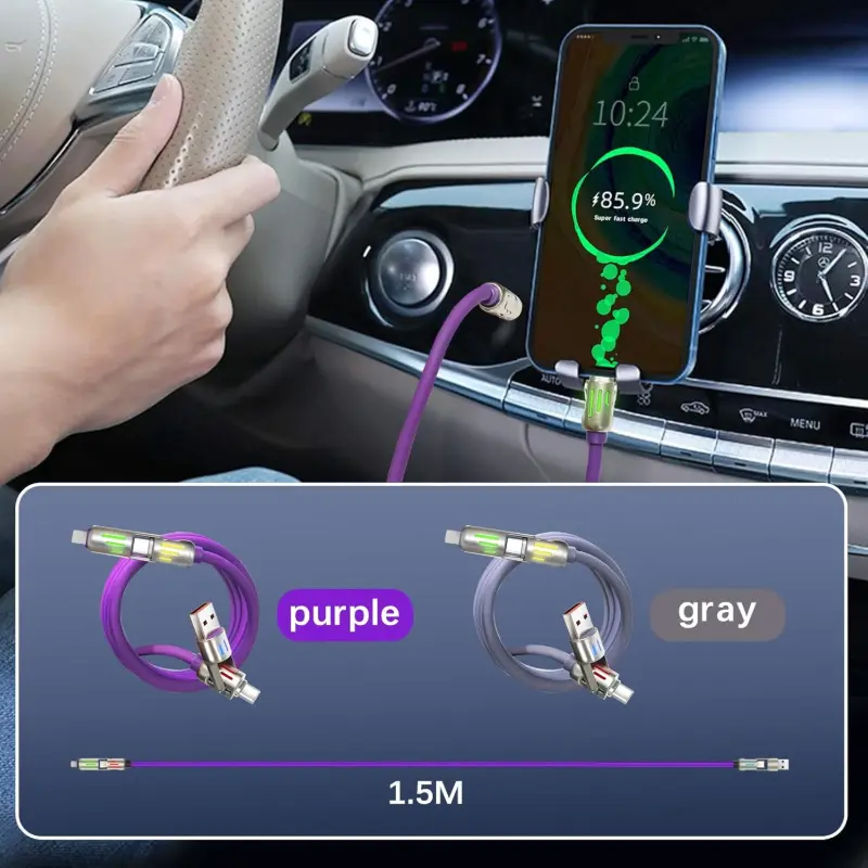 The 2in2 fast charging cable is used to charge two devices with one cable. The 240W fast charging is quick and efficient. The braided cable is sturdy and long-lasting. The cable is compatible with USB, type C, and Lightning devices. The product is best suited for daily use as well as wholesale business.